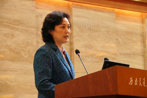 全国人大代表、致公党中央委员、成都市政协副主席、交通运输与物流学院副院长罗霞教授首先传达了十二届全国人大三次会议精神。在简要介绍大会概况、议程等内容后,她解析了习近平总书记提出的“四个全面”战略布局,以及有关经济新常态、反腐倡廉、环境治理、财税改革、“三农”问题、养老改革、就业创业、大国外交等热点内容。她还简要传达了习近平总书记在“两会”上提及的一些关键词,如“新常态”、“政治生态”、“法治”、“生态”、“强军兴军”等等。随后,罗霞代表重点解读了政府工作报告。回顾2014年,我国增速稳、就业稳、价格稳;经济结构有新的优化;发展质量有新的提升;人民生活有新的改善、改革开放有新的突破。2015年工作总体部署方面,报告提出:着眼于保持中高速增长和迈向中高端水平的“双目标”;坚持稳政策、稳预期和促改革、调结构的“双结合”;打造大众创业、万众创新,增加公共产品、公共服务的“双引擎”。报告提出,要持续推进民生改善和社会建设,要切实加强政府自身建设,协调推动经济稳定增长和结构优化,把改革开放扎实推向纵深。罗霞代表还就报告中的一些高频词和新出现的词汇进行了解释。另外,罗霞代表对预算报告、常委会报告、最高人民法院及最高人民检察院报告主要内容进行了解读。